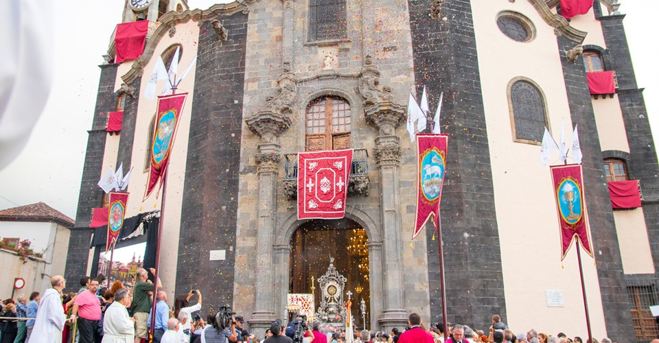 Con gran Solemnidad recorrió el Señor Sacramentado las calles de La Orotava, destacar del trayecto procesional, la salida con los pendones eucarísticos que adornaban la fachada del Templo Matriz , así como la siempre espectante entrada a la plaza del Santísimo y la bendición Solemne del mismísimo Dios desde el balcón central de las casas consistoriales.